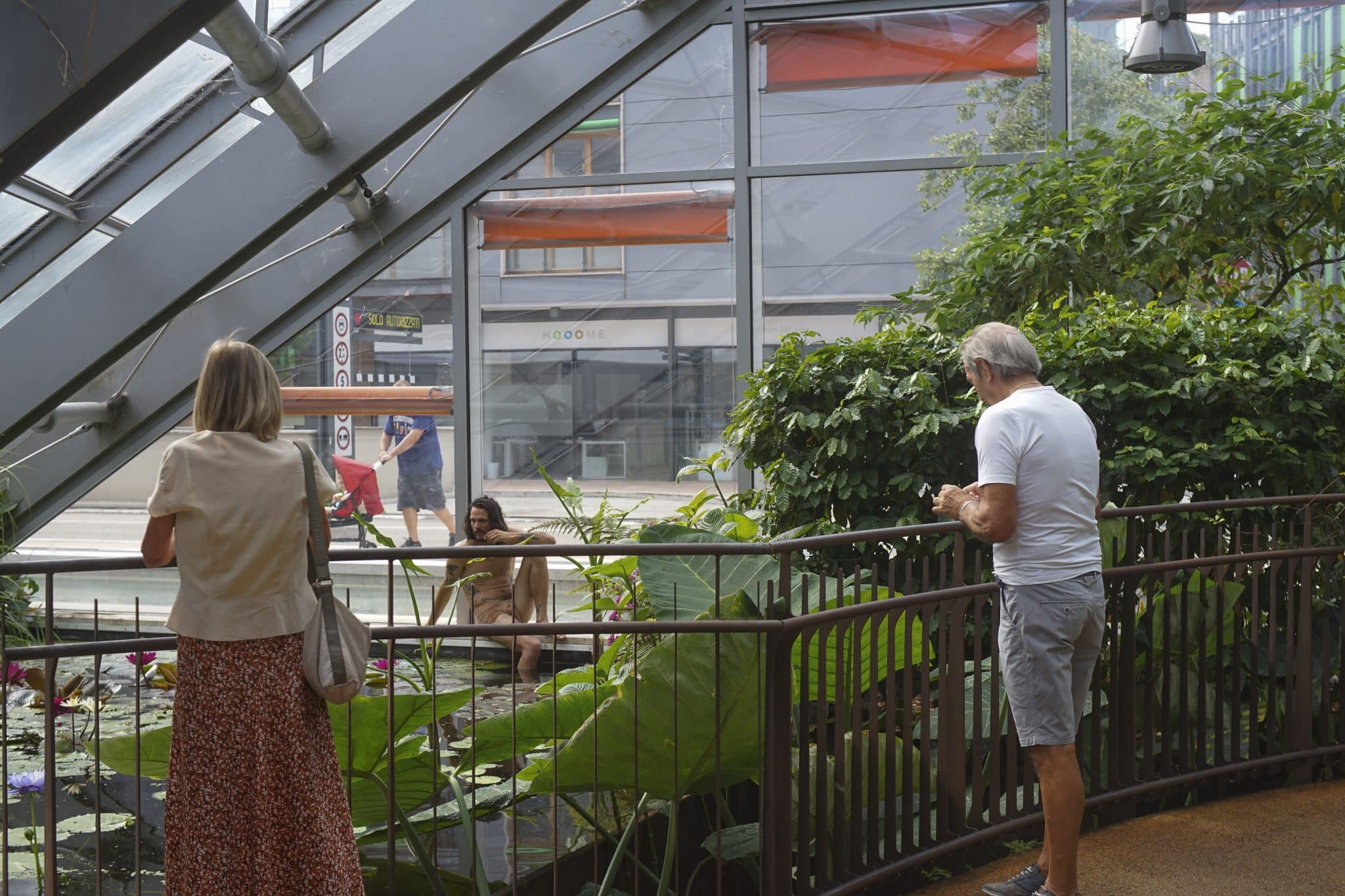 “La serra è molto viva, le piante e gli animali in qualche modo mi hanno accolto, e io ho accolto loro dentro di me: sono riuscito a instaurare un rapporto simbiotico, leggero e incondizionato. All’arrivo delle persone, in quanto ‘performer’, ho preso consapevolezza che io stesso ero significato”, racconta a caldo Boccardi, per 24 ore “ospite” della foresta tropicale MUSE. “Di fronte alla mia figura – sottolinea – non ho trovato persone in grado di sostenere il mio sguardo per più di mezzo secondo. Interpretavo reazioni di imbarazzo, di curiosità, a volte di vergogna e paura. Era come se le persone, in qualche forma, non accettassero il fatto di vedere un essere umano laddove di solito risiedono animali e piante. Il fatto di offrirmi del cibo era l’unica possibilità di comunicazione diretta: i bambini lo facevano per curiosità, gli adulti per intrattenimento e solo alcuni per accudimento: un grazie a chi mi ha donato una barretta di cioccolato”.