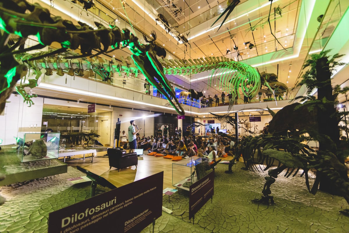 Like a window that opens at the top of a mountain, from up here you can check out its dizzy height. As you walk down, you can look into the eyes of the animals that populate it: birds of prey, ibex, deer and crows… all real and meticulously stuffed, on display according to the architectural principle of “Zero Gravity”.