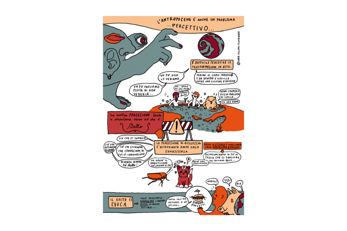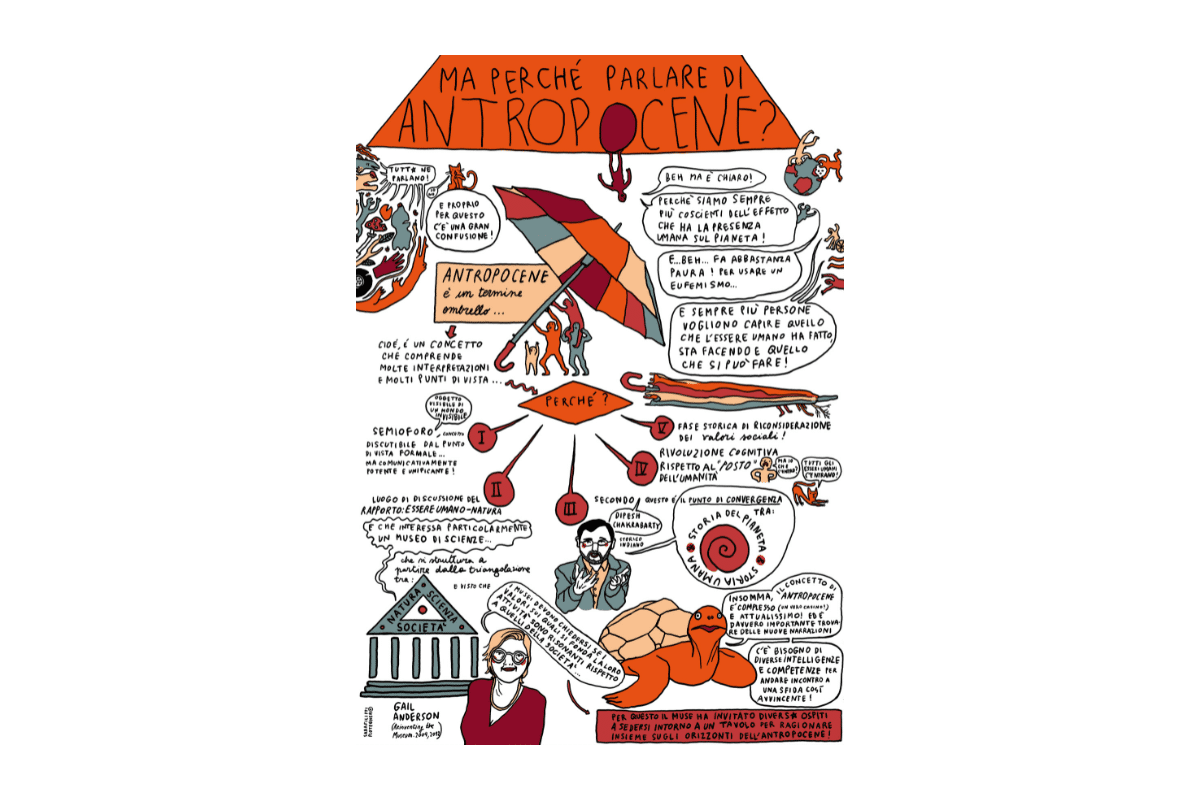 Per mettere in atto questo approccio metodologico, il 3 e 4 maggio 2022 il MUSE ha invitato una serie di persone che lavorano in ambito accademico e scientifico per discutere insieme all’interno di un Gruppo di Lavoro su alcune delle questioni più urgenti della crisi attuale, suggerendo possibili percorsi di azione all’interno e all’esterno del museo. I risultati delle giornate di confronto sono convogliati in una pubblicazione realizzata da Sara Filippi Plotegher che, attraverso le sue illustrazioni e fumetti, ha ricostruito i dialoghi di quelle giornate.
